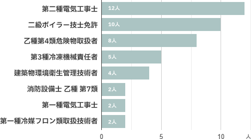 設備管理に関する資格を持つ社員が多く、専門性の高い技術力で業務を支えています。